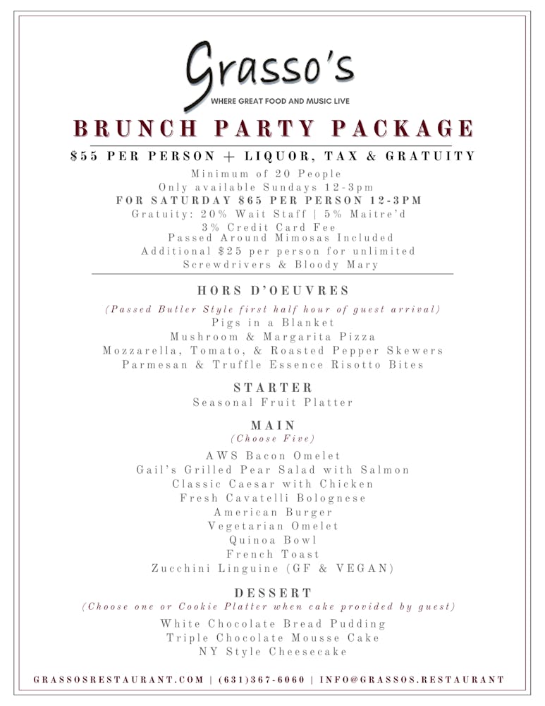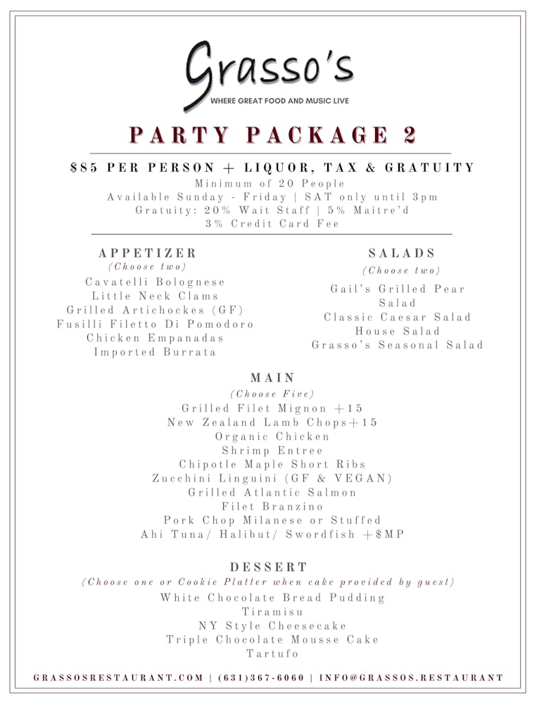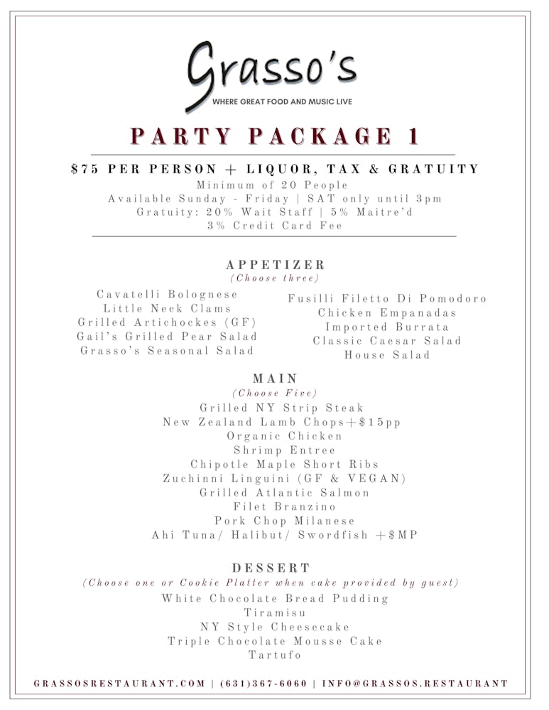 Make lifetime memories when you cater your family gathering, celebration, awards dinner or special event on Long Island with fine catering at Grasso's in Cold Spring Harbor, NY.